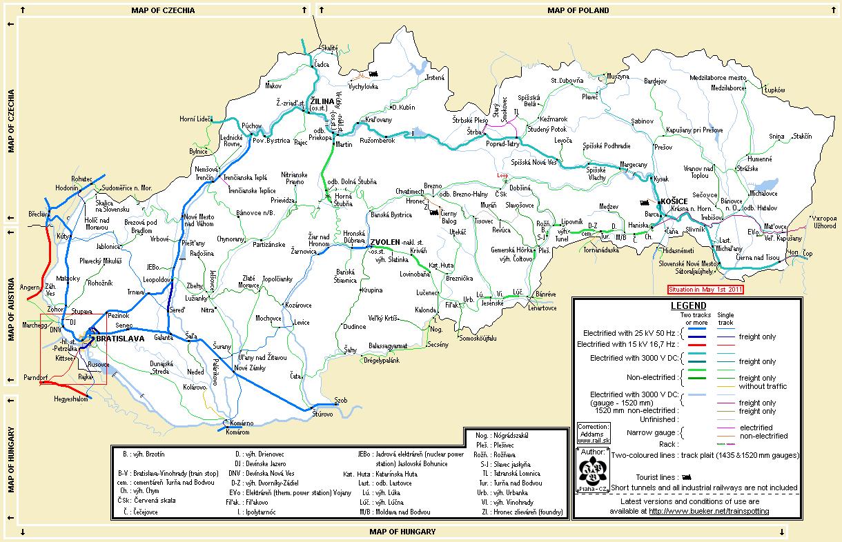 Slovakia train map. Slovakia railway map (Eastern Europe - Europe) to print. Slovakia railway map (Eastern Europe - Europe) to download.